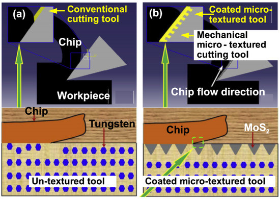 - For surface-textured cutting tools, the majority of research studies have employed a form of a joint structure named a “groove”. However, the best orientation for a grove is still being researched. These textures may be helpful for dry and wet-cutting machining, whereas the application of discontinuous textures on cutting tools requires more exploration. Pattern- and groove- optimizations are dependent on cutting parameters and workpiece or tool materials. Finally, surface texturing can be utilized effectively in combination with solid lubricants and coatings.