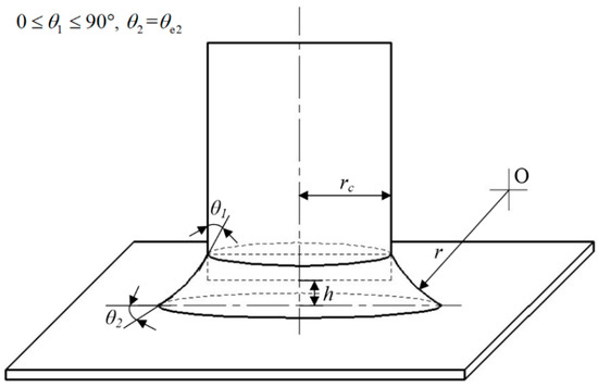 Therefore, the relationship between the capillary force Fc and VWCA θ1 can be derived from Equations (3)–(5):
