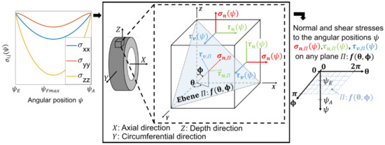 The starting values are the stress components to the respective angular positions at the selected critical volume element, as shown in Figure 6.