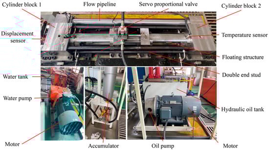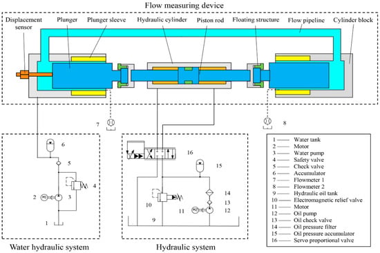 Figure 8 represents the picture of the sealing test bench. The hydraulic pressure generated by the liquid on the plunger can be offset by a symmetrically arranged structure because the two plunger cavities in the flow test device are connected through the flow pipeline. Therefore, this test bench can not only change the plunger position by hydraulic cylinder to conduct leakage tests with different seal lengths but also greatly reduce the driving power and experimental cost. The basic parameters of the sensor used in the test bed are shown in Table 2.