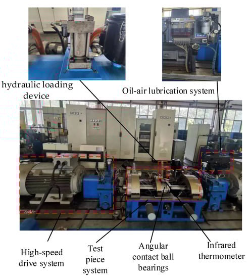 Under high-speed working conditions, rolling bearings suffer from problems such as increased friction heat generation, reduced fatigue life, cage and rolling element slippage, and rolling surface damage, which directly affect the working performance and life of the bearing system. An increase in the bearing temperature decreases the viscosity of the lubricating oil, the oil film thickness between the rolling element and the inner and outer ring raceways decreases, and the lubrication failure caused by the high temperature of the working surface leads to the failure of the spindle bearing. In addition, the temperature in the bearing system is the main factor affecting the bearing speed performance, which can be used as an important parameter to determine the bearing speed performance. Therefore, it is of great significance to study the fluid–solid coupling heat balance of high-speed rolling bearings under oil-air lubrication to investigate the bearing performance and its life.