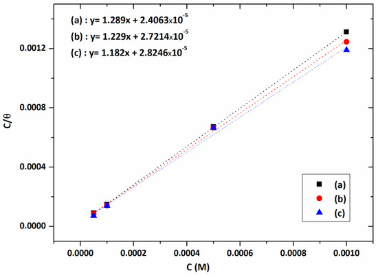 where C denotes the concentration of the inhibitor, θ is the surface coverage and Kads is the equilibrium constant obtained from the Langmuir plot [30].