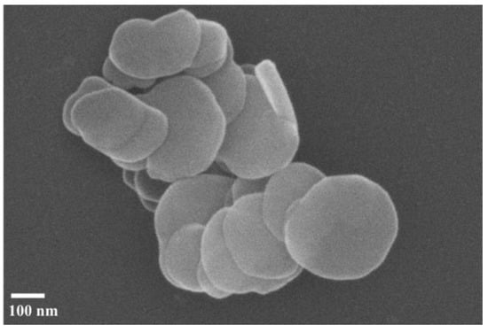 The SEM image (Figure 2) of the MgAl LDH sample exhibits a typical hydrotalcite hexagonal layered structure and uniform crystal shape and size, with an average disk diameter of about 240 nm.