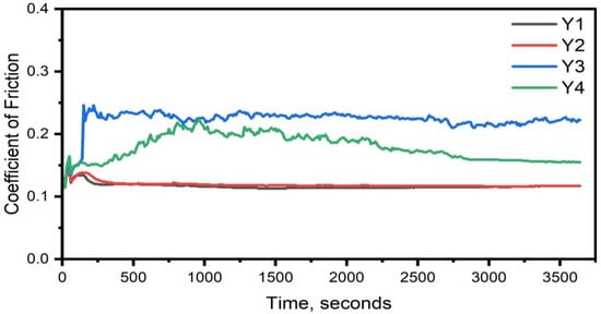 SRV friction coefficient for samples Y1, Y2, Y3 and Y4 under 100 N.