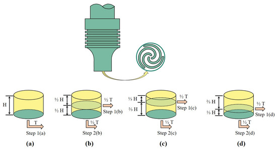 Four tool plunging paths including a one-time plunging path and three step-by-step plunging paths were designed, as shown in Figure 3. H is the total plunging depth and T is the total dwell time. The plunging process was automatically controlled by the numerical control program.