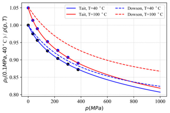 The relative volume has also been plotted for Tait and Dowson equations of state in