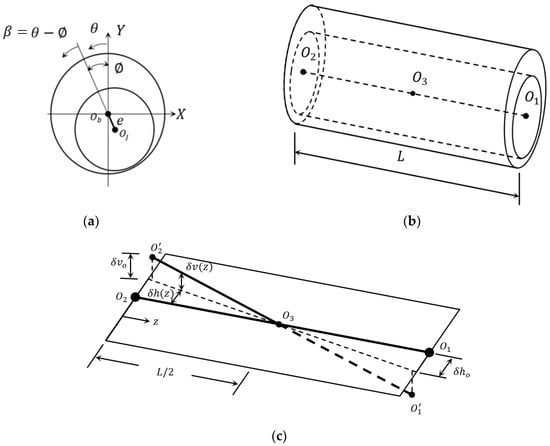 In the case of misalignment, the eccentricity, as well as the attitude angle, are no longer constant along the bearing width. They should be identified at each Z position along the bearing width, as given by [8]: