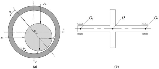 Schematic drawing of: (a) journal bearing, (b) rotor [29] edited.
