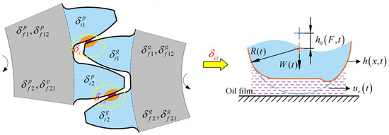 where, is the rigid body displacement; is the equivalent curvature radius; the elastic deformation of the two contact bodies under hydrodynamic pressure can be calculated by [26],