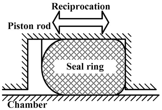 The sealing behavior of seal rings in different kinds of equipment has been researched by many scholars. A three-dimensional simulation model was proposed by ZHU et al. to analyze the performance of a combined seal ring [17]. They found that the contacting pressure of the combined seal ring was significantly influenced by the thickness of the slip ring, the pressure of the working fluid medium and the compression amount of the O-ring. The influence of the pre-compression ratio of the O-ring, the material hardness of the O-ring and the thickness of the slip ring on the sealing performance was researched by Guo et al. via the FE software ANSYS Workbench [18]. The sealing performance of combined seal rings with different surface structures under maximum environment pressure, 20 MPa, was studied by Zhao et al. [19]. The influence of working pressure and pre-compression of the seal ring on the sealing performance was analyzed by Salant et al. by establishing a calculation model of the reciprocating hydraulic piston sealing device [20]. The relationship between sealing pressure and leakage amount was studied by Nikas et al. [21]. A numerical model for reciprocating rod matching with a rectangular seal ring was built. The influence of the structural parameters of the seal ring on the sealing performance was simulated by Chen et al. via ABAQUS software [22]. The distribution of temperature and stress of the non-contact seal was analyzed by Blasiak et al. [23]. Moreover, the effect of different structures on the sealing performance was also discussed. Mo et al. analyzed the sealing performance of the reciprocating seal ring used in petroleum devices [24]. They found that the maximum contacting pressure varied nonlinearly with the increment of sliding speed of the piston rod. Sukumar et al. investigated the sealing performance of seal rings via the FE method [25]. The sealing ability was improved by setting reasonable material parameters and process parameters. Chen et al. studied the influence of structural parameters of spiral grooves on the sealing performance based on the cavitation model [26]. The optimal range for each parameter was also proposed. A testing protocol was developed by Ahmed [27] to investigate the performance of common elastomeric seal rings, which were used in a liner seal assembly hanger. Ethylene propylene diene monomer (EPDM) and nitrile butadiene rubber (NBR) were selected as the materials of seal rings for the tests. The results revealed that elastomers’ energization played a critical role in maintaining their sealing integrity.