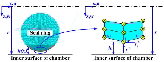 According to the virtual work principle, nonlinear equations can be obtained by discretizing the solution domain of the seal ring: