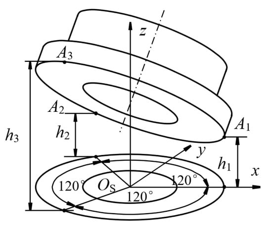 As shown in Figure 2, if the film thickness h1, h2, and h3 located at three reference points A1, A2, and A3 were known, the film thickness hg at the random point could be determined as [15,24]