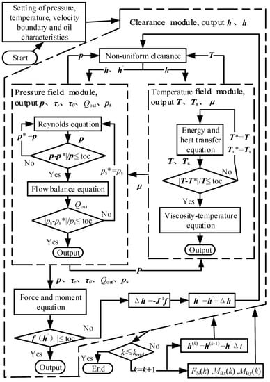 The multi-extremum equilibrium equations can be solved with consideration of the variable step size and confidence interval of the restricted solution, and then the pressure, temperature, viscosity, and thickness field of oil film could be obtained through the sequential cyclic iteration.