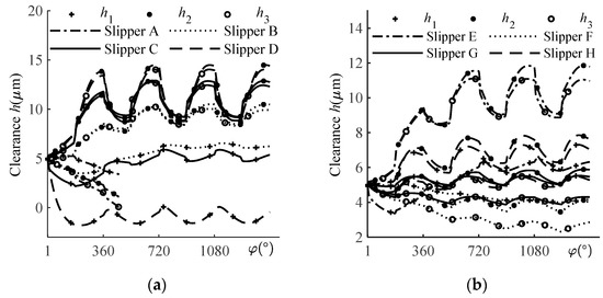 Curves of 3-point clearance: (a) Slipper A–D. (b) Slipper E–H.