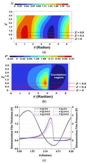 where H, P, and Z represent dimensionless oil film thickness, dimensionless oil film pressure, and dimensionless rectangular coordinate system in the z direction, respectively.
