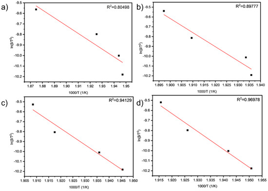 Linear fit results of (a) TA, (b) TA2, (c) TA4, and (d) TA6 obtained by PDSC analysis.