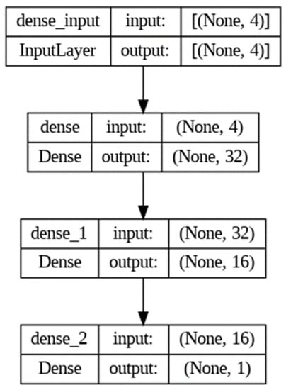 By combining the benefits of neural networks and symbolic artificial intelligence, neurosymbolic programming creates a model that is more reliable. An initial neural network structure with three layers—an input layer, two hidden layers, and an output layer—was developed for this investigation. A single output neuron was reached after the first hidden layer, which had 32 units, and the second hidden layer, which had 16 units. The rectified linear unit (ReLU) activation function was used to provide nonlinearity to the model, as shown in Figure 5.
