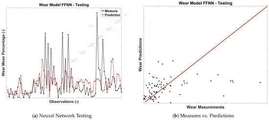 With this methodology, the rear regression model shows the best performance if compared with the other model presented (Table 11); this is mainly due to the preliminary analysis carried out on the database, which made it possible to highlight the functional relationships between the various key performance indicators. It is important to underline that within the inputs of the regressive model, there are indicators of all three relevant areas analyzed. As regards the model developed for the front wheels, the result is in line with the models previously analyzed, with slightly higher  and  values.