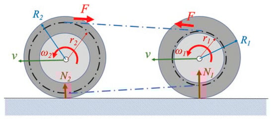 Similarly, the force generated by DF is the braking component due to DF, which is integrated from this cross-point to l based on the result of in Equation (18) being . Subsequently, we obtain Equation (23):