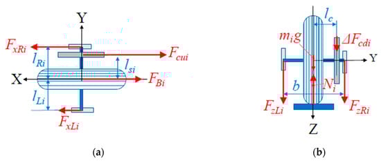 Forces acting in each direction: (a) Top view. (b) Back view [].