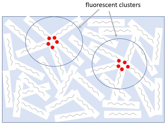 Heteroatoms or unsaturated bonds, if present in the oil as impurities or as a result of radiation-induced degradation, are well-separated (especially when they are in dilute solutions) and PL is weak or absent. However, when the number of such defects increases, they may begin to cluster, producing an effect known as a clustering-triggered emission (CTE) [].