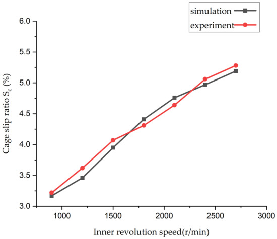 As shown in Table 3, the cage slip rate increases with the bearing speed, and the root mean square difference between the test and simulation is 0.11%, which verifies the validity of the simulation model.