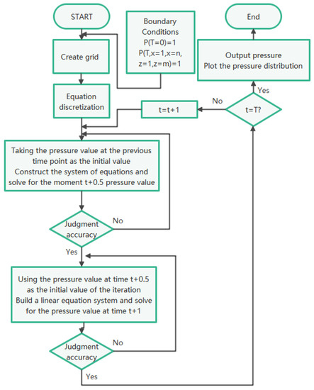 The above calculation process is converted into the flow chart of calculating the Reynolds equation used to solve the alternating direction implicit, as shown in Figure 3.