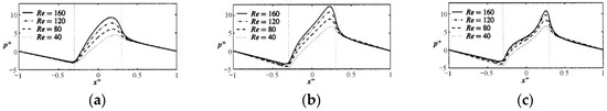 No matter the type of textured surface, it is a combined micro-structure of convex and concave, through surface-molding technology. In the hydrodynamic lubrication and mixed lubrication state, the main lubrication mechanism is the hydrodynamic effect and cavitation effect [70]. Hamilton [65] found that micro-irregularities on the surface can improve the bearing capacity of the lubricant film. The micro-irregularities form a convergent wedge on their leading edge, thus generating additional hydrodynamic pressure on the lubricant film. The divergent wedge on the trailing edge causes a cavitation phenomenon, which restrains the generation of negative lubricant film pressure. Thus, the asymmetric pressure distribution occurs in the lubricant film, and the bearing capacity of the lubricants is improved, further separating the two friction surfaces with relative motion, as shown in Figure 5 [65] and Figure 6 [71]. Studies have shown that the hydrodynamic lubrication performance of the surface texture is affected by the shape [72], depth–diameter ratio [73], area ratio, relative position change [74], the contact mode change in the friction pair (line contact, surface contact) [75], etc.