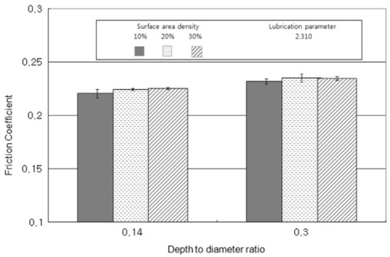 The effect of the dimple diameter on the friction coefficient at the sliding speed of 0.21 m/s [119].
