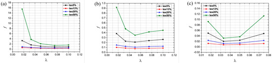 The lubrication antifriction mechanism of the surface texture is related to the lubrication state, which mainly includes fluid lubrication, boundary lubrication, and dry friction. The Stribeck curve (Figure 4) [69] can present the three different types of lubrication states: boundary lubrication (λ < 1, λ is the ratio of surface separation and comprehensive roughness), mixed lubrication (1 < λ < 3), and hydrodynamic lubrication (λ > 3), and the transition between the different lubrication states.