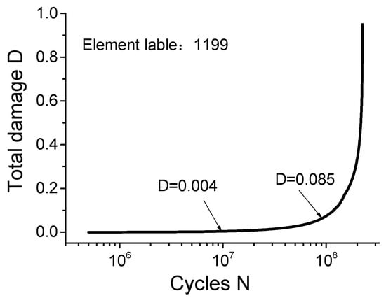 Rolling bearings used in high-speed EMU axle box are subjected to various load conditions due to the stochastic nature of railway operations. In cases of over-loading, plastic deformation becomes inevitable, which can accelerate the initiation of fatigue cracks. This may accelerate the fatigue crack initiation process. Therefore, both elastic damage related to shear stress range and plastic damage associated with plastic deformation should be considered [,,,]. The total damage rate can be divided into two components, as follows: