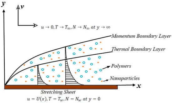 - Athar, M.; Ahmad, A. Behavior of fluid flow and heat transfer induced by a stretching surface in the presence of polymers. Phys. Scr. 2021, 96, 13. [Google Scholar] [CrossRef]
