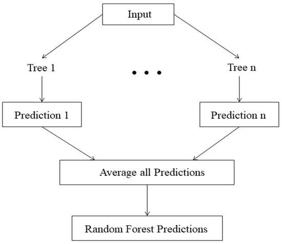 The algorithm creates each tree based on a different sample of input data, which are used as input information. The features are randomly selected for splitting at each node, and the trees are run in parallel at each node without any interaction. In order to produce a single prediction, the predictions from all of the trees are then averaged to produce a single result that can be referred to as the prediction of the random forest. A visual representation of a random forest is shown in Figure 3.