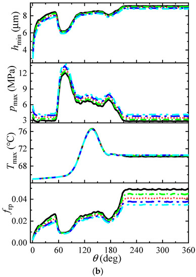 Impact of the modified load on the lubrication state of the cam-roller unit. (a) Cam-roller contact; (b) roller-pin contact.