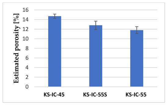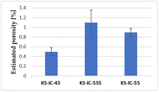 Average porosity of the induction-remelted coatings estimated using ImageJ software.
