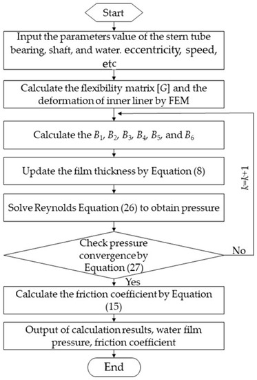 The Reynolds equation [26,27] for finite-width water-lubricated stern tube bearings in a steady state is