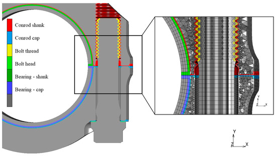 Table 2 provides an explanation of the contact interactions considered for each of the contact bodies depicted in Figure 3. Particularly, an initial friction coefficient of 0.1 was adopted at the interface between conrod and bearing, based on relevant literature [1], and a sensitivity analysis of the results was then conducted by varying this parameter.