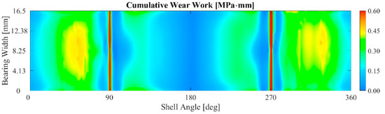 Figure 15. Cumulative specific wear work on the inner surface of the big end for the simplified case.
