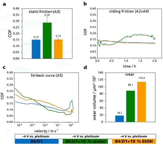 - Amann, T.; Dold, C.; Kailer, A. Potential Controlled Tribological Behavior of Water-Based Ionic Liquids. KEM 2016, 674, 250–256. [Google Scholar] [CrossRef]