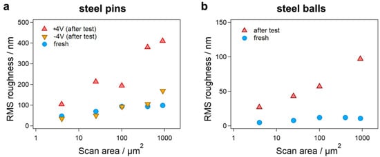 - Gatti, F.; Amann, T.; Kailer, A.; Abicht, J.; Rabenecker, P.; Baltes, N.; Rühe, J. Makroskopische Reibwertsteuerung durch elektrochemische Potentiale mit ionischen Flüssigkeiten. Tribol. Und Schmier. 2019, 66, 51–57. [Google Scholar] [CrossRef]