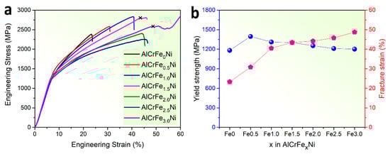 - Liu, F.; Song, Q.; Chen, R.; Li, W.; Song, X.; Sun, J.; Wang, C. Effects of Al and Co contents on the microstructure and properties of AlxCoCryFeNi high-entropy alloys. Mater. Charact. 2023, 203, 113108. [Google Scholar] [CrossRef]