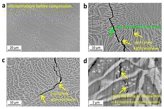- Wang, M.; Wen, Z.; Liu, J.; Ma, B.; Wang, M.; Zou, Z.; Zhao, Y. Labyrinthine structure Al CrFeNi (x ≥ 1) eutectic high entropy alloys with duplex reinforced phases. J. Alloys Compd. 2022, 918, 165441. [Google Scholar] [CrossRef]