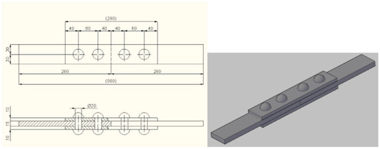 Figure 1 shows the geometries of the double symmetric lap joint considered in this numerical analysis (for more details, see ref. [14]). The main plate thickness was 15 mm with a width of 60 mm. The main plate and the cover were made of structural steel S355, having, according to EN 10025 [32], a minimum yield stress of 355 MPa and ultimate stress ranging from 490 to 630 MPa, respectively.