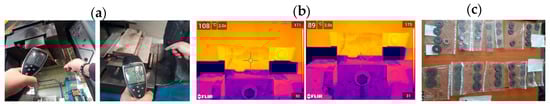- Measurements of temperature changes with a thermal camera (FLIR T540 camera, FLIR Systems, Inc. Wilsonville, OR, USA) and a pyrometer with a type K thermocouple (Testo 850 pyrometer, Testo Poland, Pruszkow, Poland);