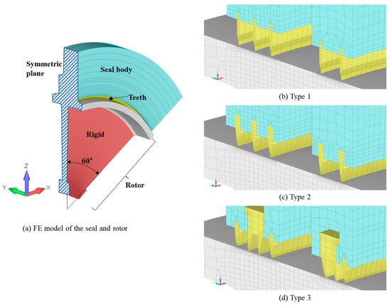 - Yan, X.; Dai, X.; Zhang, K.; Li, J.; He, K. Effect of teeth bending and mushrooming damages on leakage performance of a labyrinth seal. J. Mech. Sci. Technol. 2018, 32, 4697–4709. [Google Scholar] [CrossRef]