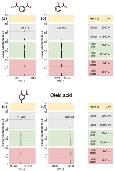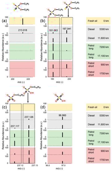 - Da Costa, C.; Whitmarsh, S.; Lynch, T.; Creaser, C.S. The Qualitative and Quantitative Analysis of Lubricant Oil Additives by Direct Analysis in Real Time-Mass Spectrometry. Int. J. Mass Spectrom. 2016, 405, 24–31. [Google Scholar] [CrossRef]
