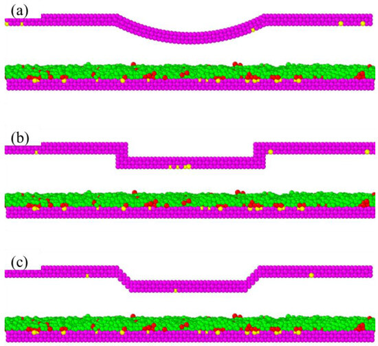 According to references [30,33,34], three potential functions were selected owing to their ability to simulate the interactions between different beads in the molecular dynamics model, including LJ (Lennard–Jones) potential, FENE (finitely extensible nonlinear elastic) potential, and EXP (short-range attractive polar function) potential.