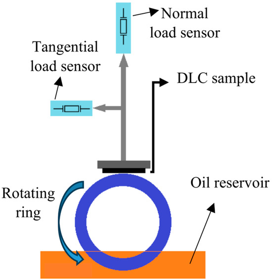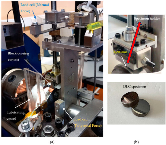 The urgent requirement to decrease greenhouse gas emissions necessitates innovative measures to positively influence our planet’s condition in the coming years. Control of friction elements plays a direct role in enhancing the performance of systems by minimizing heat dissipation and reducing wear. This, in turn, enables significant energy preservation throughout the lifespan of the system. Effective friction management further extends the durability of components by reducing undesirable deterioration, leading to favorable energy conservation outcomes through the diminished necessity for component replacements [1,2,3]. Therefore, currently, there is a huge emphasis on creating advanced materials that can effectively reduce friction and enhance the durability of mechanical components in motion. To comprehensively explore this, significant studies in tribology are trying to understand how lubricants impact the behavior of moving parts. It is crucial to recognize that friction and wear are attributes of the entire system, not just the materials involved. Promising solutions include the utilization of ILs as additives to lubricants and thin DLC coatings [4]. Previous research works have proven the benefits of utilizing DLCs, ILs, or base lubricants alone or simultaneously to minimize friction or wear.