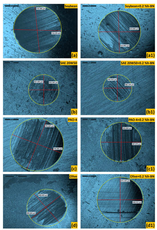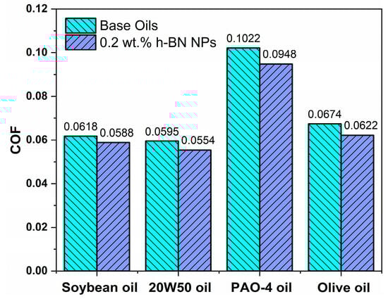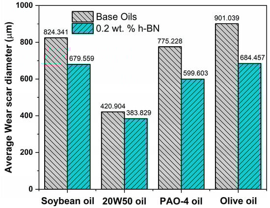 APA StyleZiyamukhamedova, U., Wasil, S., Kumar, S., Sehgal, R., Wani, M. F., Singh, C. S., Tursunov, N., & Gupta, H. S. (2024). Investigating Friction and Antiwear Characteristics of Organic and Synthetic Oils Using h-BN Nanoparticle Additives: A Tribological Study. Lubricants, 12(1), 27. https://doi.org/10.3390/lubricants12010027