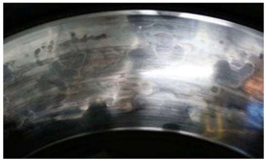 The braking process of a train is a process of friction heat generation. The kinetic energy of the train is converted into heat energy due to the friction between the brake disc and the brake pad. The large amount of heat produced by friction can arouse high temperatures in the brake disc, resulting in a large temperature gradient and thermal expansion in the brake disc. Due to the restraint, the brake disc will be subjected to huge thermal stress, resulting in the deformation of the brake disc. Once the thermal and mechanical stresses in the brake disc exceed the ultimate bearing capacity of the material, thermal cracks and hot spots will be generated on the surface of the brake disc, as shown in Figure 1. Therefore, it is necessary to analyze the temperature field of train brake discs.